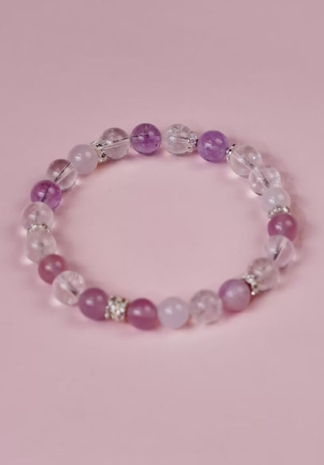 Esta pulsera para el Chakra Corona está hecha a mano con amatista, jade morado, azeztulita blanca y ágata blanca para activar el Chakra Corona. Ideal para quienes buscan la paz interior, pensadores que necesitan inspiración o cualquier persona que busque el crecimiento personal, su energía serena ayuda a aquietar la mente para acceder a la sabiduría superior y conectar con tu ser más profundo y el universo.